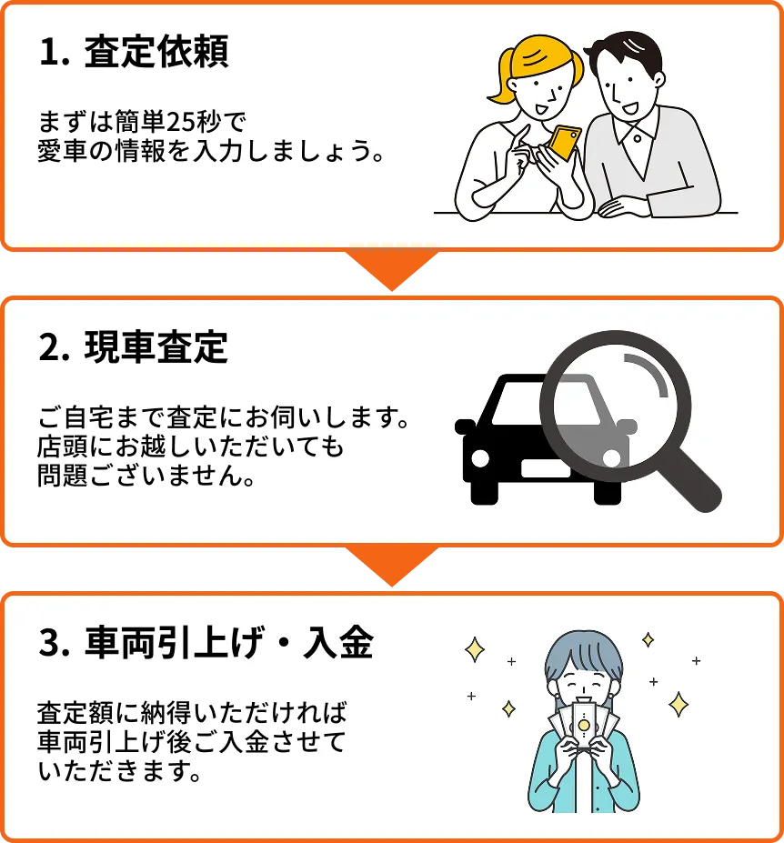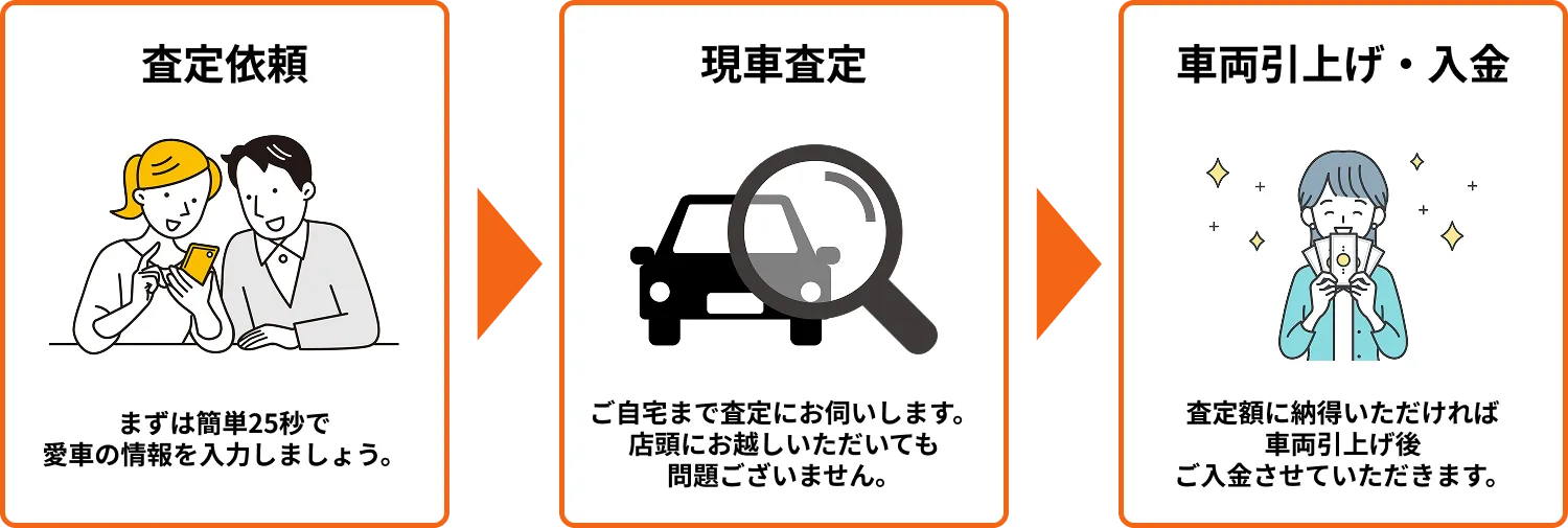 車内に乗せていただいている、車検証・自賠責・リサイクル券をご持参ください。